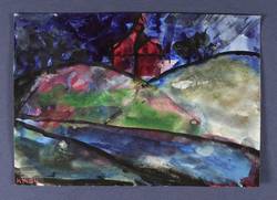 Kretschmer, Katharina -  -  - Ohne Titel (Kleine Landschaft mit Kirche III)