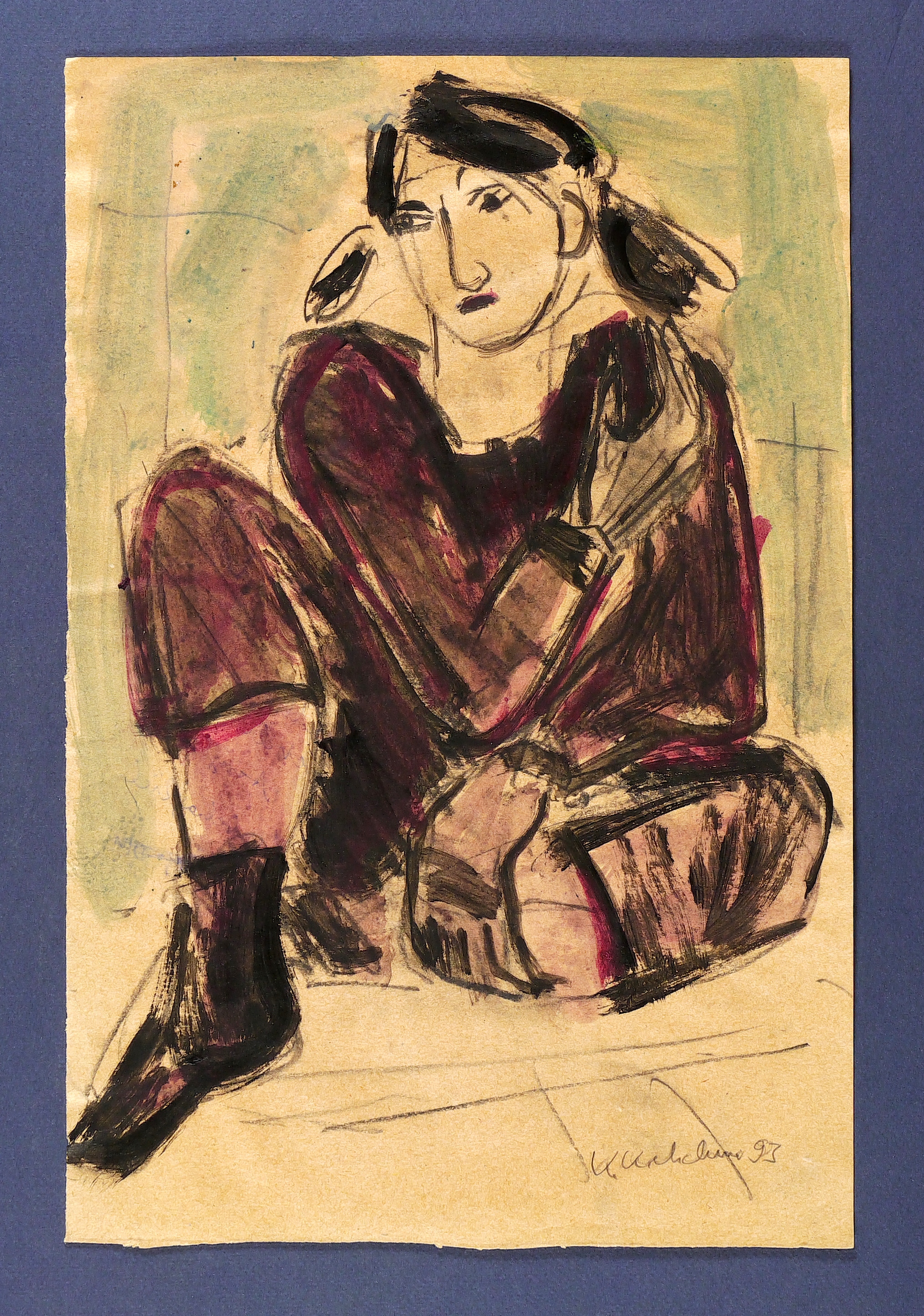 Kretschmer, Katharina. – „Unbehaglich (Sitzendes Mädchen)”.
