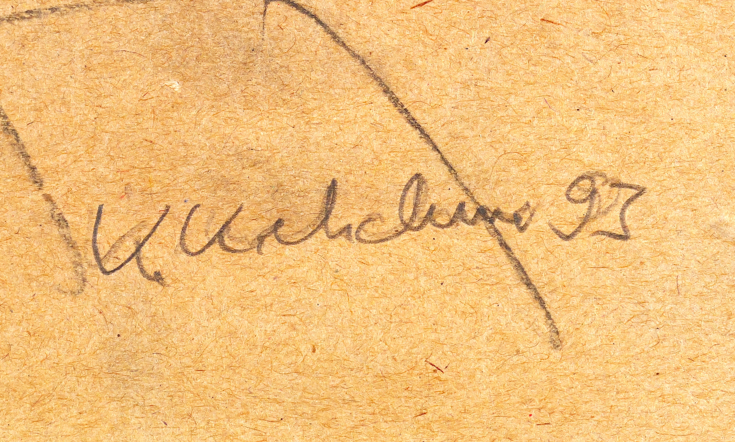 Links unten signiert und datiert. Verso in Kugelschreiber signiert, datiert und betitelt. – Papier durchgehend leicht wellig. Im unteren Blattbereich wenig knickspurig. Verso Klebebandreste. Sonst guter Zustand.