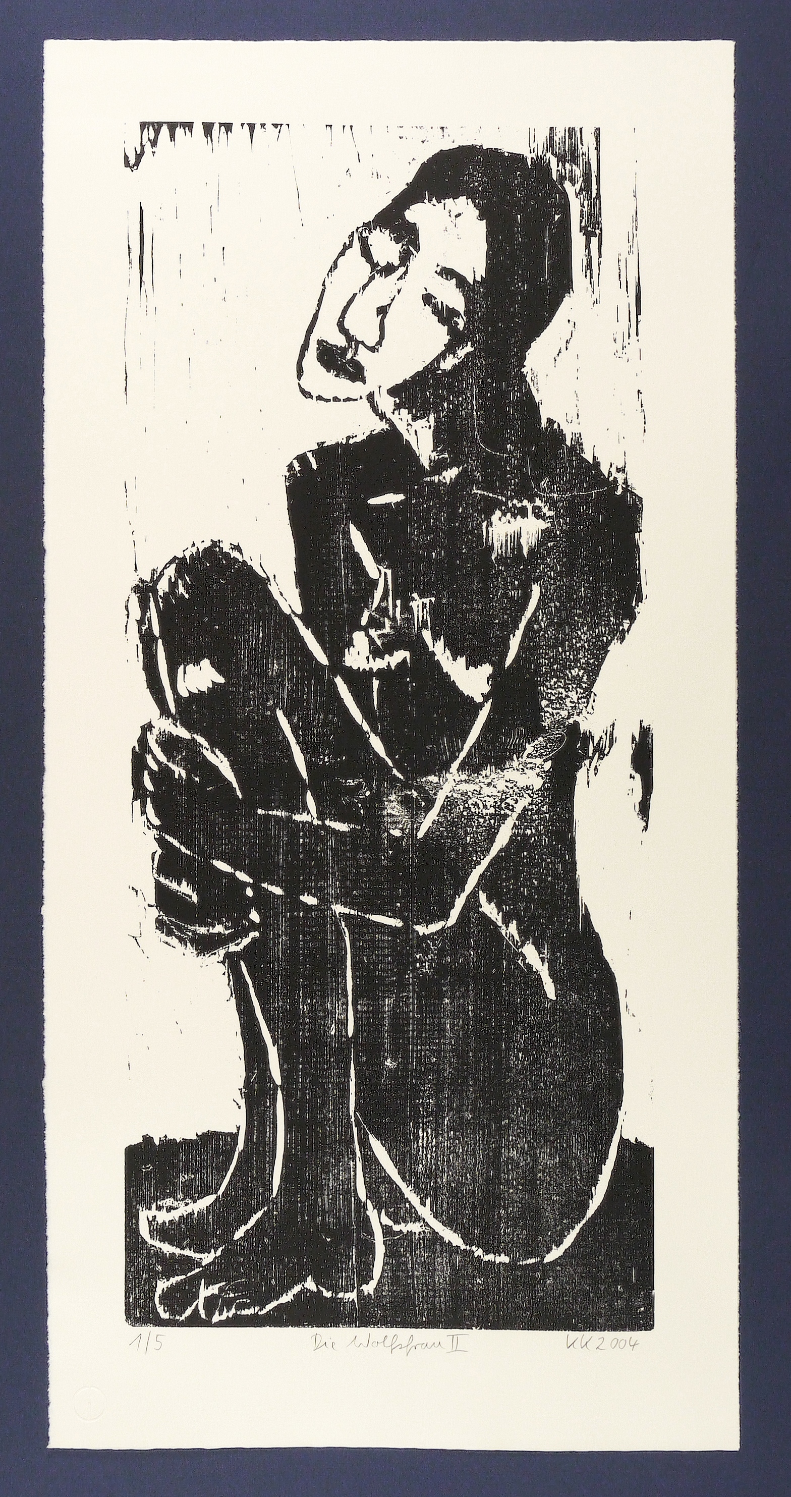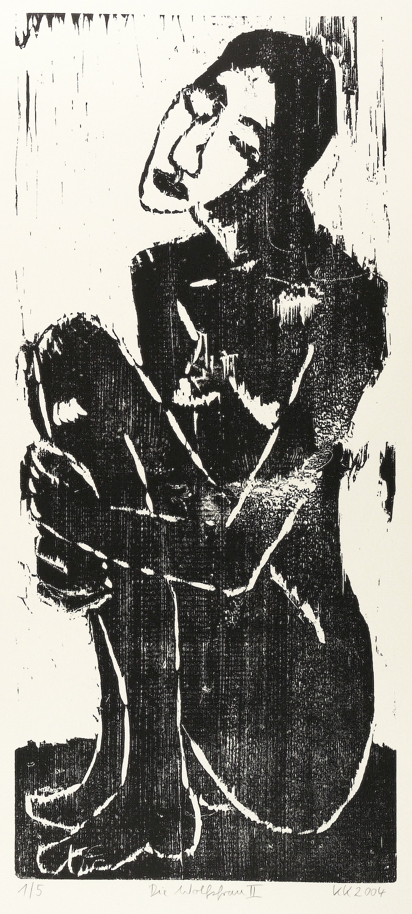 2004. Holzschnitt, in Schwarz, auf weißem Bütten. – Originale Künstlergrafik, von Katharina Kretschmer. – Auflage Exemplar Nr. 1/5. – 66,0 x 29,0 cm (Darstellung / Druckstock), 77 x 37,5 cm (Blatt).