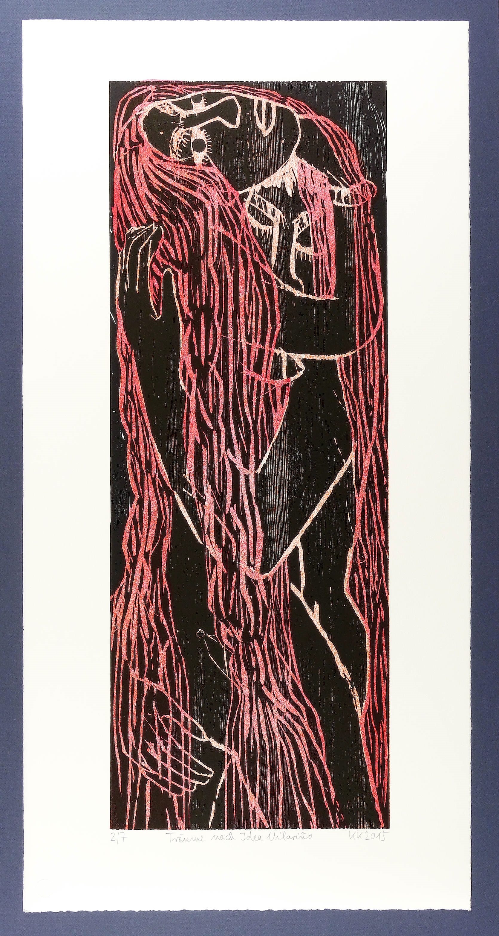 2015. Farbholzschnitt, in 3 Farben, auf weißem Velin. – Originale Künstlergrafik, von Katharina Kretschmer. – Auflage Exemplar Nr. 2/7. – 75,8 x 28,3 cm (Darstellung / Druckstock), 90,0 x 45,0 cm (Blatt).