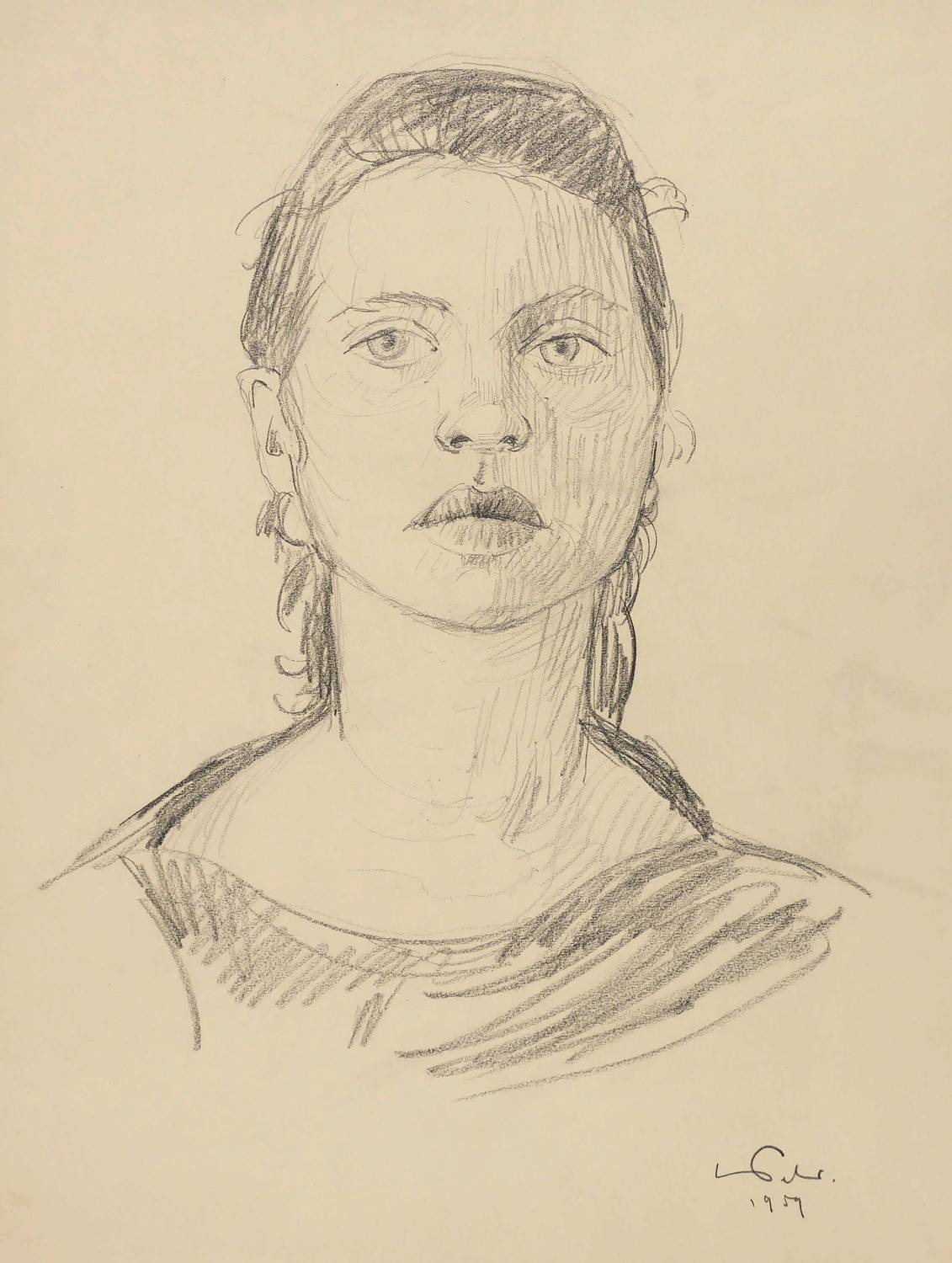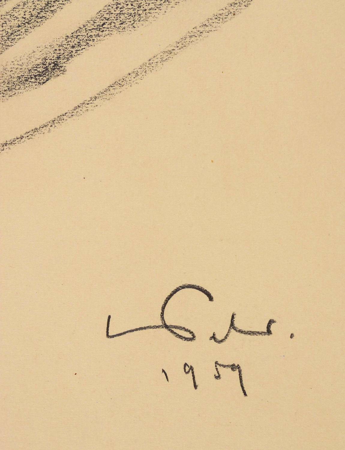 1959. Zeichnung / Graphitzeichnung, auf Papier. – Originale Künstlergrafik, von Lothar Weber. – Unikat. – 41,0 x 30,0 cm (Darstellung), 48 x 38 cm (Blatt).