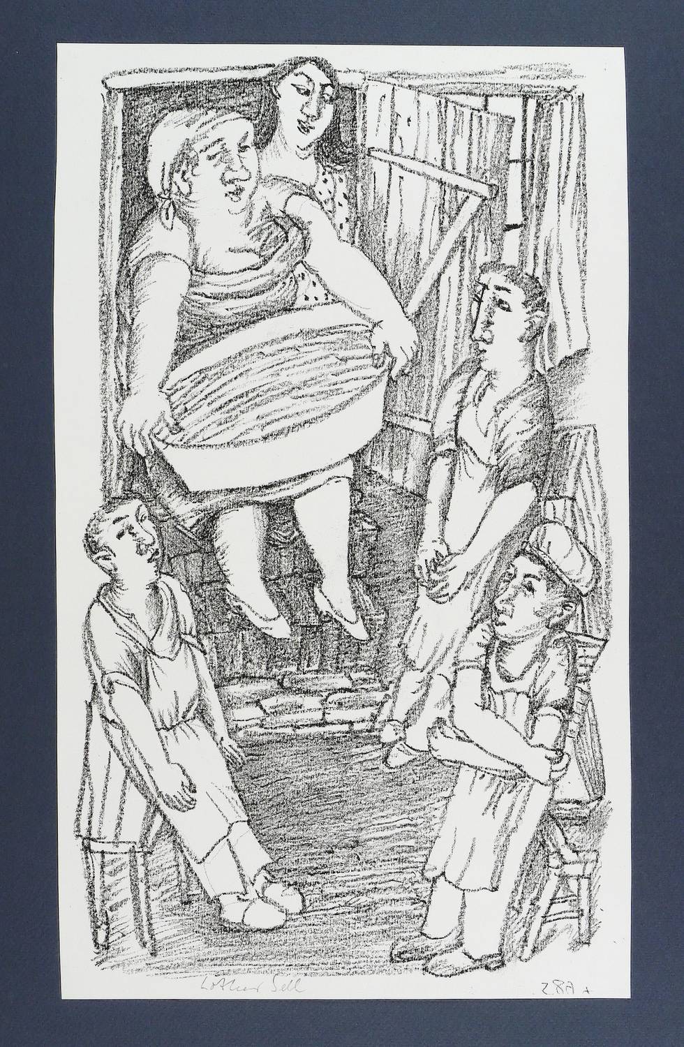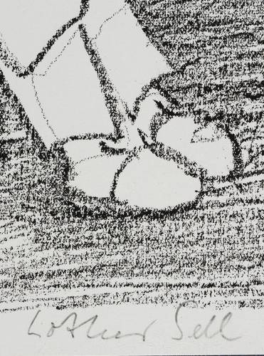 Unter der Darstellung in Bleistift signiert. – Aus einem Verlagskonvolut mit Originalgrafiken, Autografen und Andrucken von Lothar Sell. Mit handschriftlicher Signatur des Künstlers! – Sehr gut erhalten.