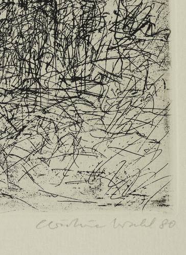 1968/1980. Radierung / Strichätzung, in Schwarz, auf Velin. – Originale Künstlergrafik, von Christine Wahl. – Auflage Exemplar Nr. 18/25. – 17,0 x 19,5 cm (Darstellung / Platte), 37 x 35 cm (Blatt).