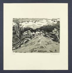 1979. Radierung / Aquatinta & Reservage, in Schwarz, auf hellchamois Velin. – Originale Künstlergrafik, von Veit Hofmann. – Auflage Exemplar Nr. 157/200. – 19,2 x 25,9 cm (Darstellung), 20,0 x 26,7 cm (Platte), 37 x 36 cm (Blatt).
