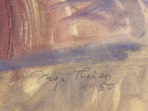 Rechts unten in Bleistift signiert und datiert: ″Inge Thiess 1950″. – Links kleiner Randeinriss hinterlegt. Sonst keine Mängel. Guter Zustand.