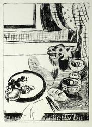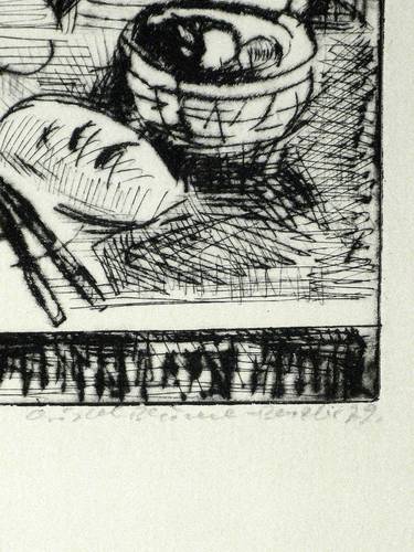 1979. Radierung / Kaltnadel, in Schwarz, auf hellchamois Velin. – Originale Künstlergrafik, von Christel Blume-Benzler. – Auflage Exemplar Nr. 7/15. – 24,4 x 17,8 cm (Darstellung / Platte), 49 x 38 cm (Blatt).