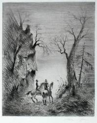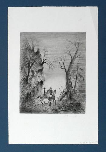 Um 1930. Radierung / Strichätzung & Kaltnadel, in Schwarz, auf Büttenpapier. – Originale Künstlergrafik, von Magnus Zeller. – 28,5 x 23,0 cm (Darstellung / Platte), 48 x 32 cm (Blatt).