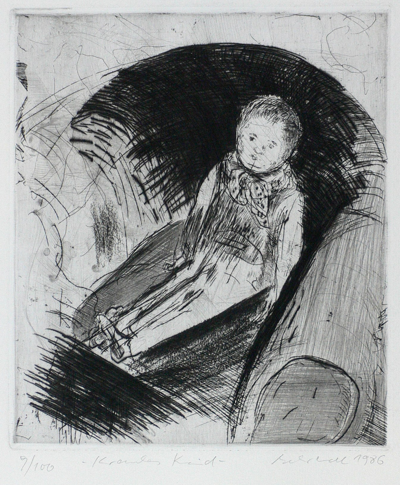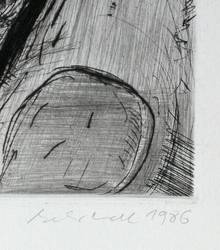 1986. Radierung / Strichätzung & Kaltnadel, in Schwarz, auf hellchamois Velin. – Originale Künstlergrafik, von Falko Behrendt. – Auflage Exemplar Nr. 9/100. – 22,5 x 19,5 cm (Darstellung / Platte), 39,5 x 30 cm (Blatt).