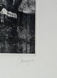 Rechts unter der Platte in Bleistift signiert und datiert und links betitelt. Am Blattrand rechts unten Wasserzeichen der Hahnemühle. – Radierkünstlerische Montage fotografischer Aufnahmen des Bahnhofs und des Jüdischen Friedhofs in Prag. Darüber eine Mauer und Fassaden. – Wichtiges Hauptblatt aus dem Schaffen des Künstlers. – Papier leicht gebräunt. Sonst sehr schön erhalten.