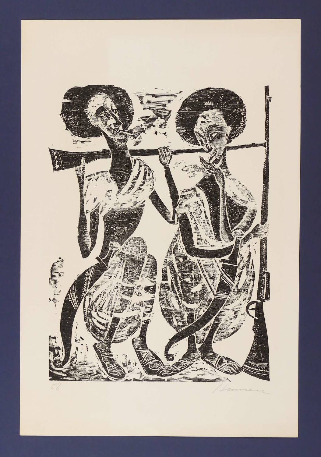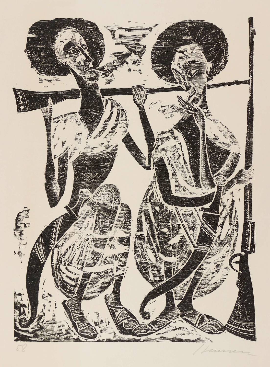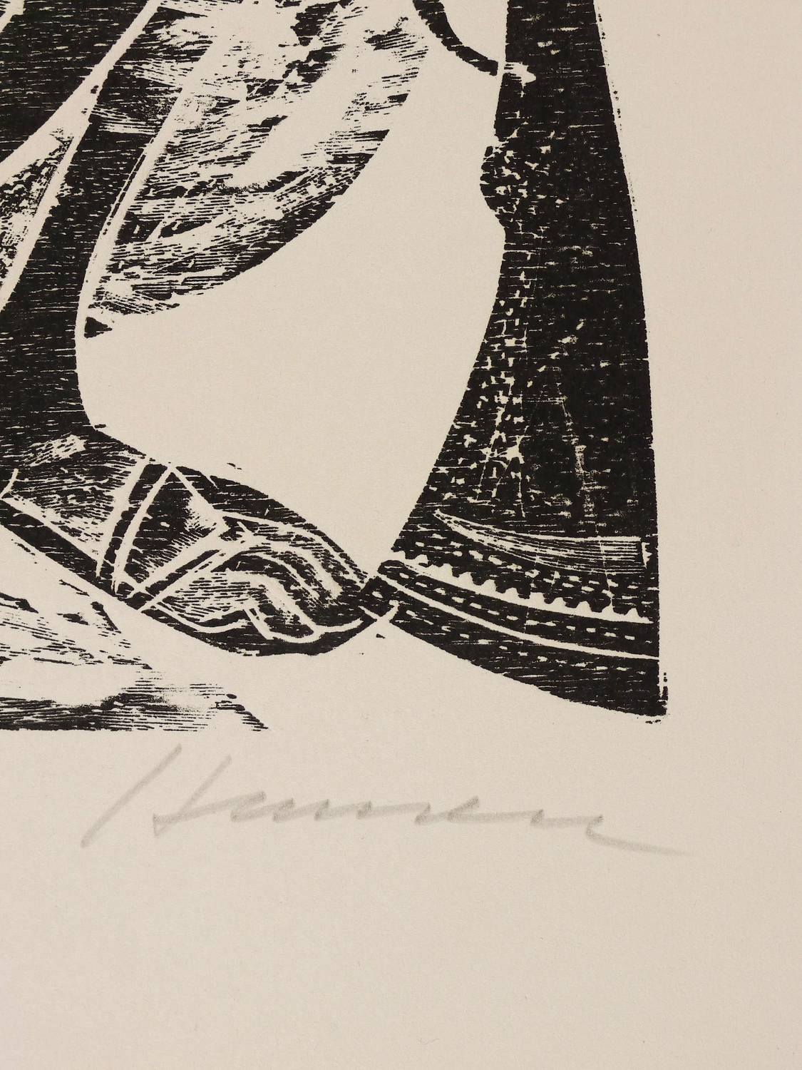 1958. Holzschnitt, in Schwarz, auf hellem Velin. – Originale Künstlergrafik, von Hansen-Bahia. – 41,0 x 31,0 cm (Darstellung), 58 x 39 cm (Blatt).