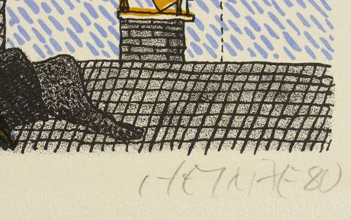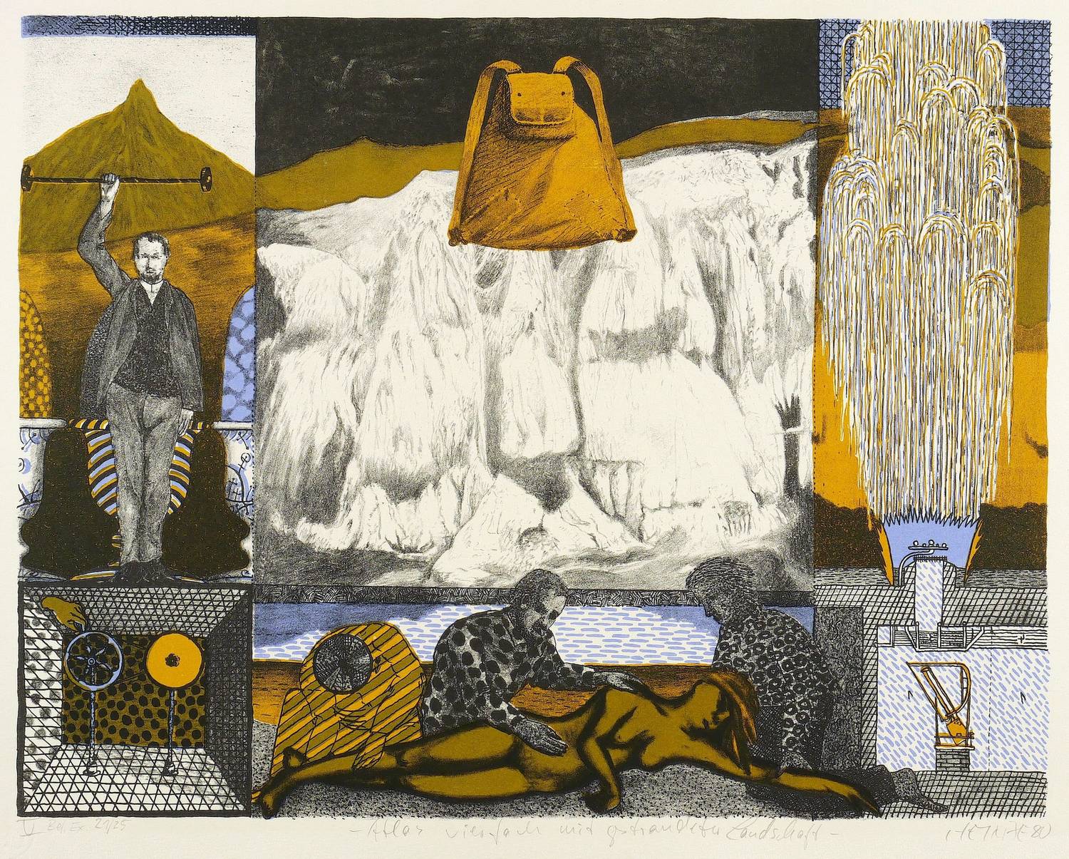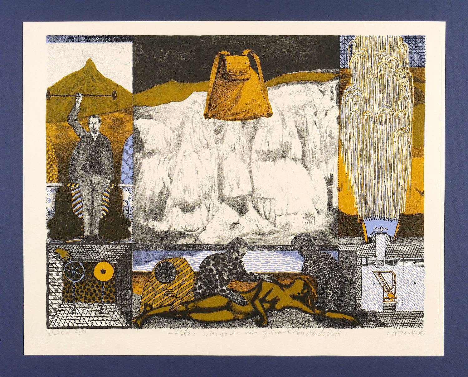 1980. Lithografie / Farblithografie, auf Hahnemühle-Bütten. – Von Frieder Heinze. – Auflage Exemplar Nr. 21/25. – 34,0 x 44,0 cm (Darstellung), 39,0 x 48,5 cm (Blatt).