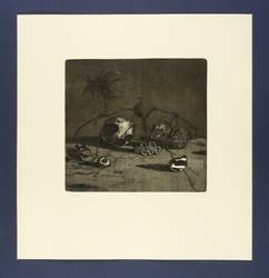 1984. Radierung / Strichätzung & Aquatinta, in Schwarz, auf hellchamois Velin. – Originale Künstlergrafik, von Klaus Magnus. – Auflage Exemplar Nr. 33/200. – 19,9 x 21,2 cm (Darstellung / Platte), 36,5 x 34,5 cm (Blatt).