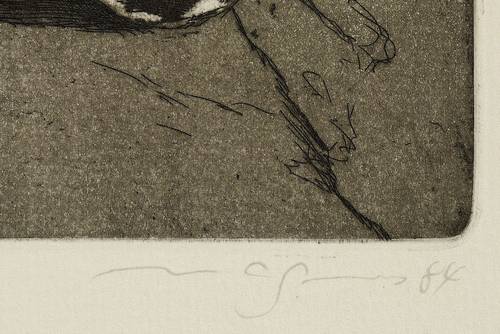 Außerhalb der Platte rechts unten in Bleistift signiert und datiert sowie links mit eigenhändiger Auflagenbezeichnung versehen. Trockenstempel der Grafik-Edition. – Papier marginal gebräunt. Guter bis sehr guter Erhaltungszustand.