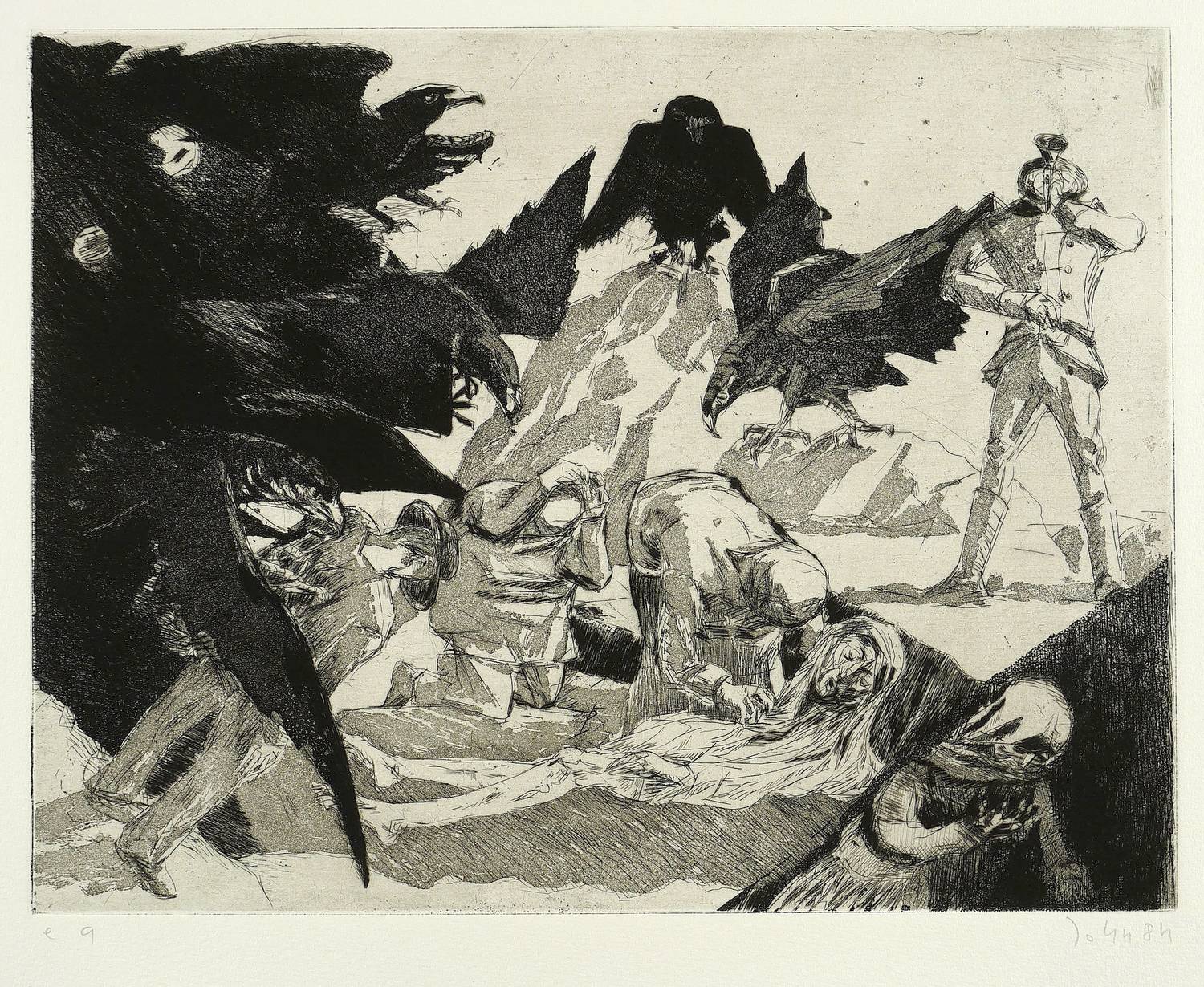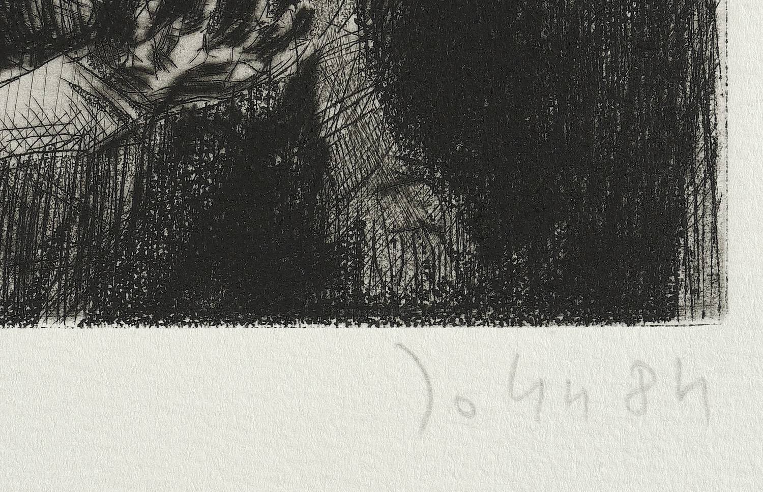 1984. Radierung / Aquatinta, in Schwarz, auf hellchamois Velinkarton. – Originale Künstlergrafik, von Joachim John. – Künstlerexemplar (e.a.). – 26,0 x 33,5 cm (Darstellung / Platte), 39 x 56 cm (Blatt).