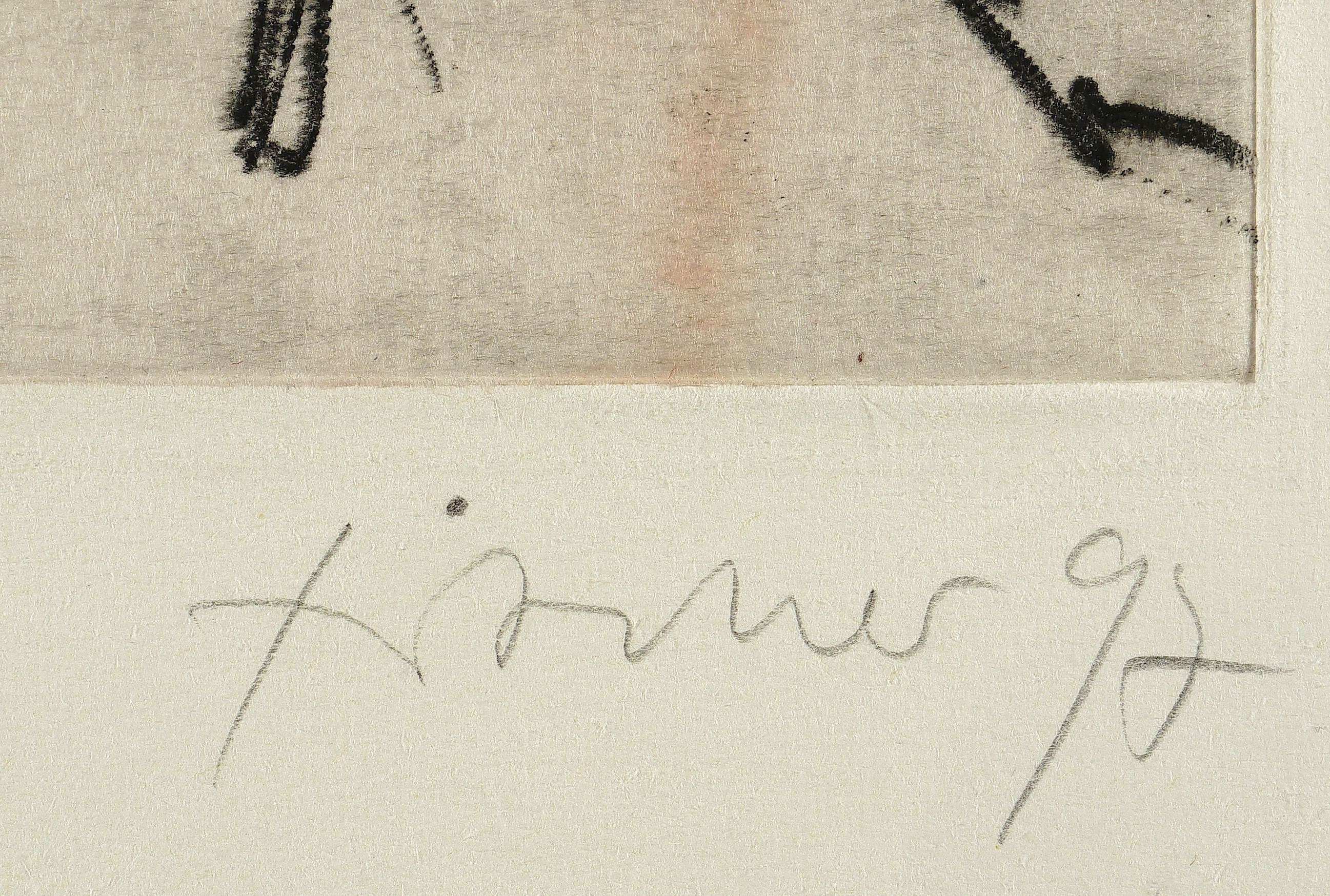 1997. Radierung / Strichätzung, mit farbigem Plattenton, auf Hahnemühle-Bütten. – Originale Künstlergrafik, von Steffen Fischer. – Unikat. – 43,7 x 32,1 cm (Darstellung / Platte), 54 x 40 cm (Blatt).