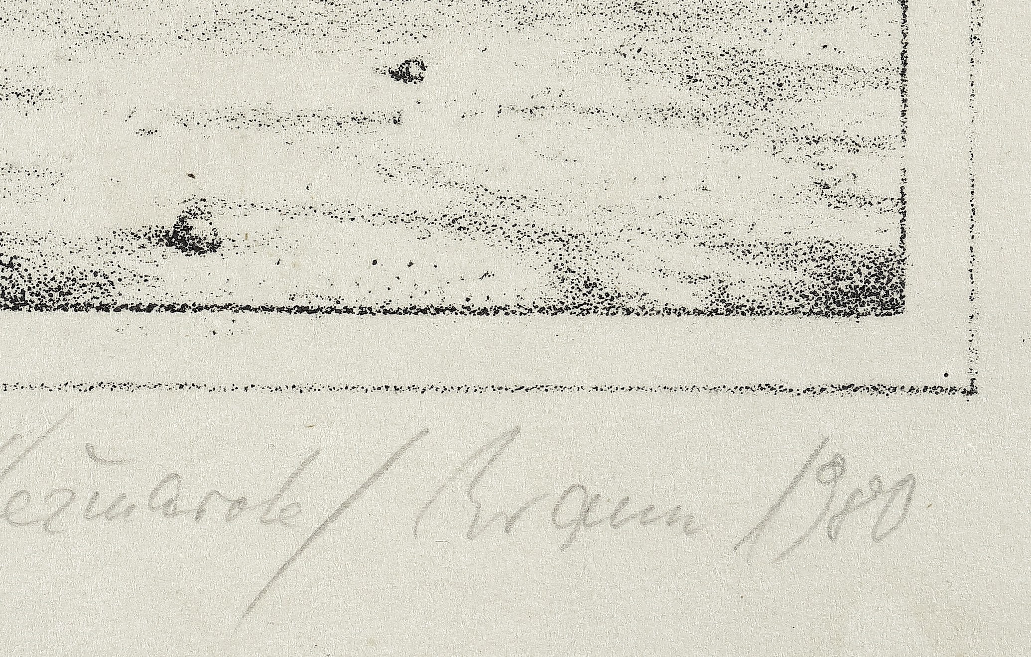 1980. Lithografie / Kreidelithografie. – Von Jost Braun. – Auflage Exemplar Nr. 30/30. – 39,9 x 27,8 cm (Darstellung), 50,5 x 35 cm (Blatt).