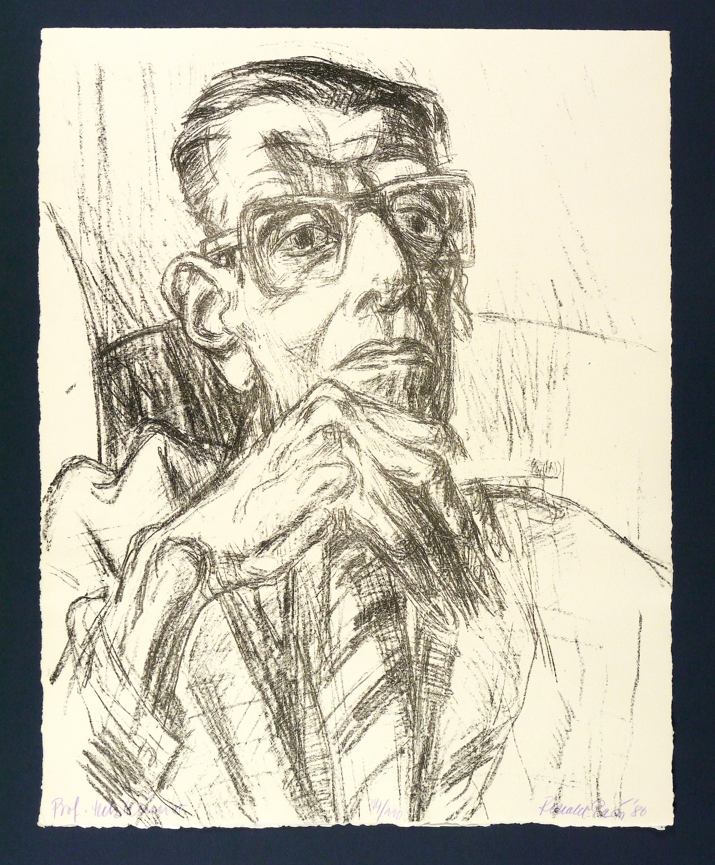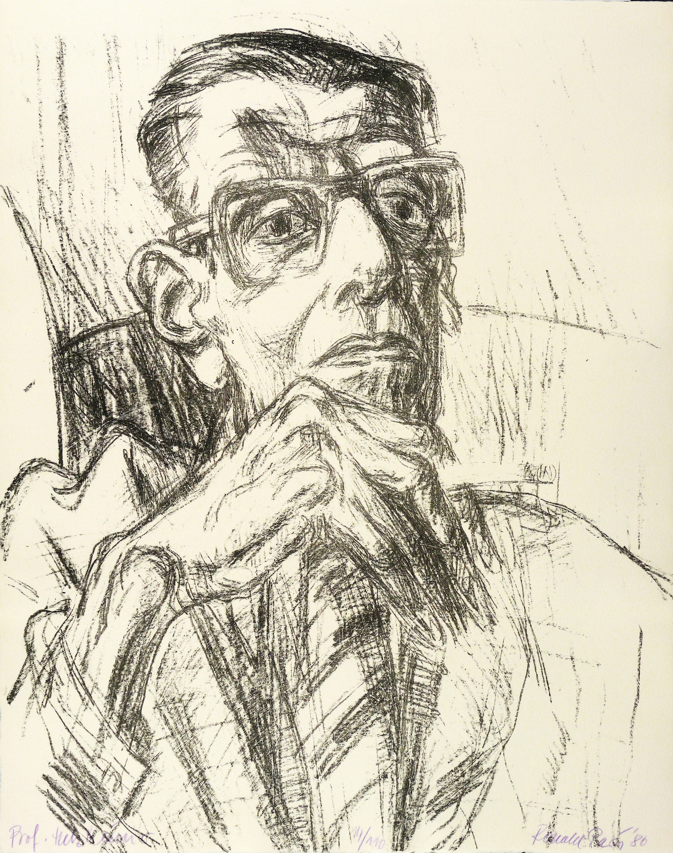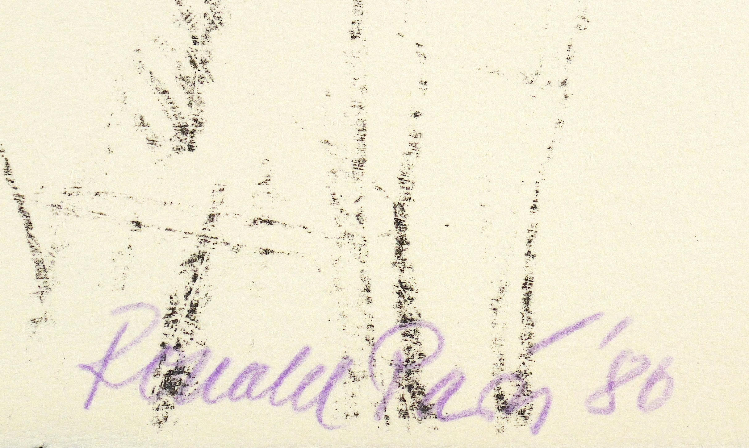 1986. Lithografie / Kreidelithografie, in Schwarz, auf hellgelbem Velinkarton. – Originale Künstlergrafik, von Ronald Paris. – Auflage Exemplar Nr. 14/100. – 50,0 x 39,5 cm (Darstellung / Blatt).