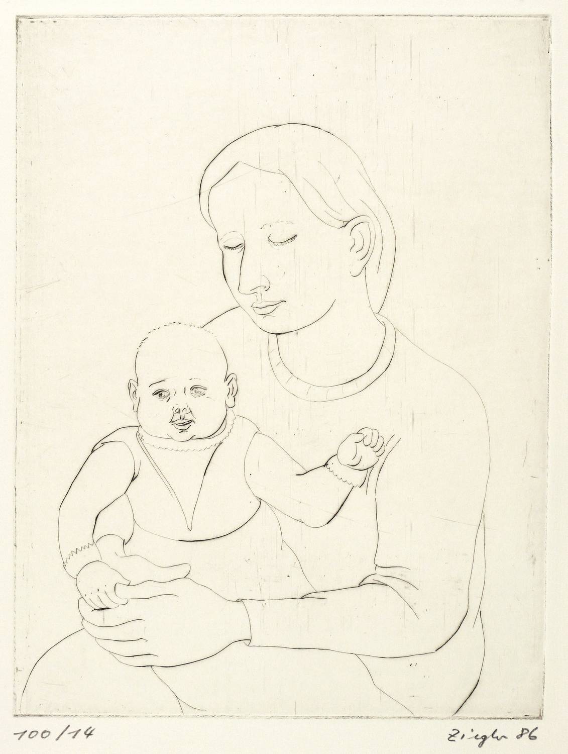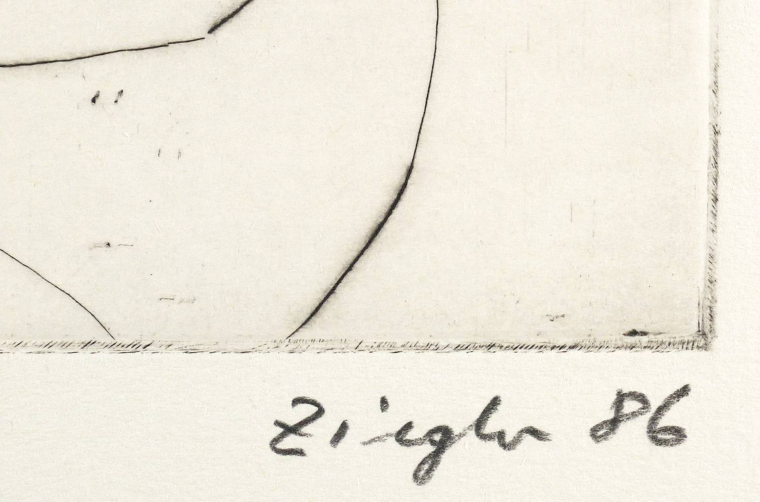 1986. Radierung / Kaltnadel, in Schwarz, auf Hahnemühle. – Originale Künstlergrafik, von Thomas Ziegler. – Auflage Exemplar Nr. 14/100. – 32,8 x 24,9 cm (Darstellung), 50 x 39,5 cm (Blatt).