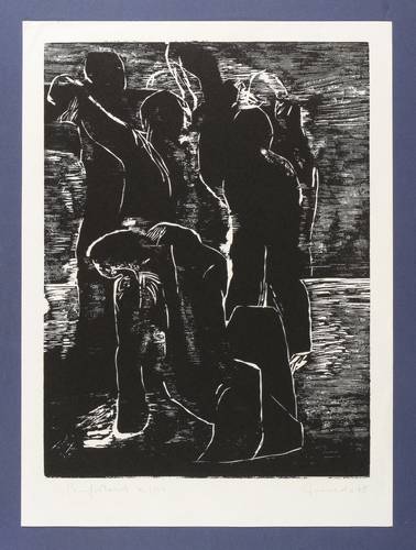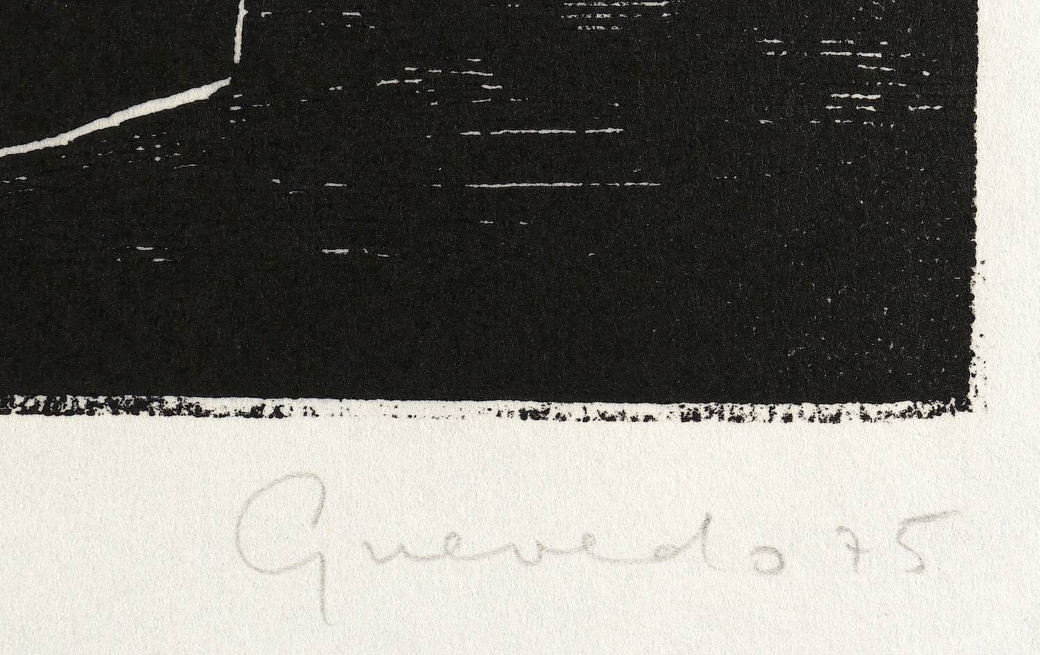 1974. Holzschnitt, in Schwarz, auf hellchamois Velin. – Originale Künstlergrafik, von Nuria Quevedo. – Auflage Exemplar Nr. 72/150. – 40,0 x 29,7 cm (Darstellung / Druckstock), 46 x 34 cm (Blatt).