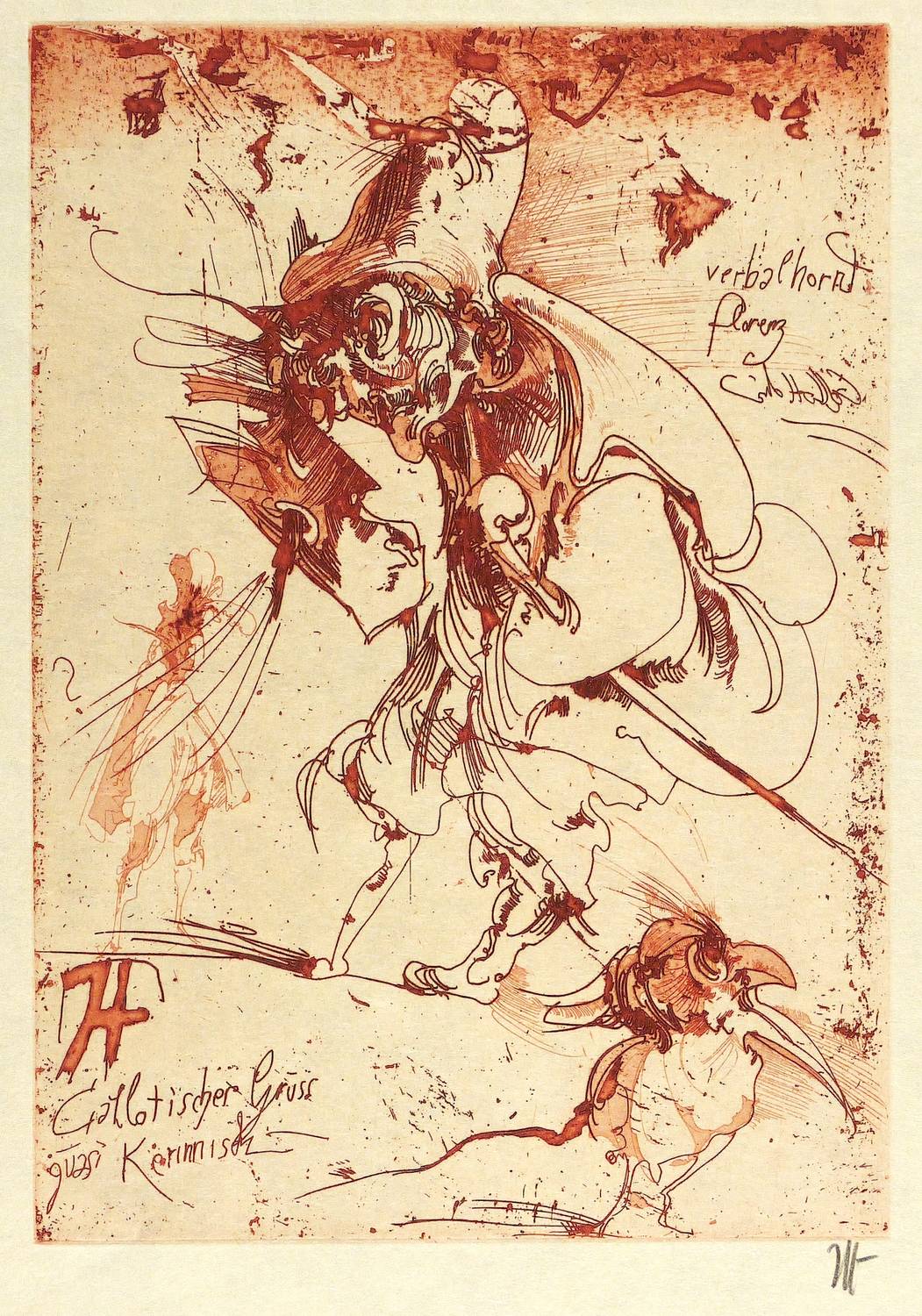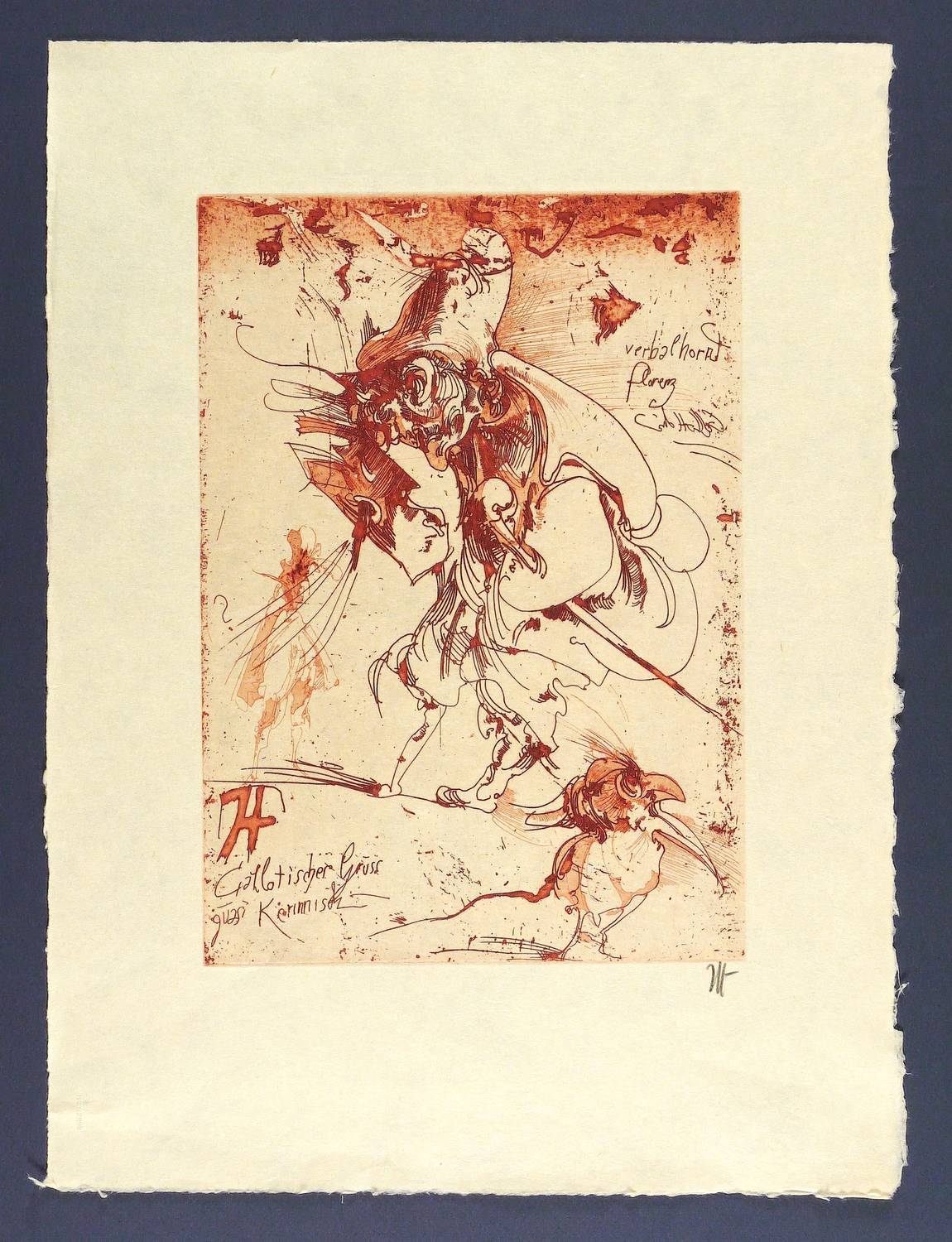 Frielinghaus 94. – Rechts unten in Bleistift signiert. In der Platte Monogramm und Inschrift: ″Callotischer Gruss quasi kerinnisch / verbalhornt Florenz″. – Originalrandig. Marginale Lagerspuren. Insgesamt sehr guter Zustand.