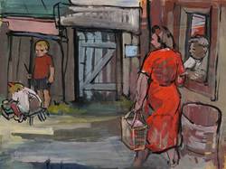 Mau, Hans -  -  - Spielende Kinder im Hinterhof