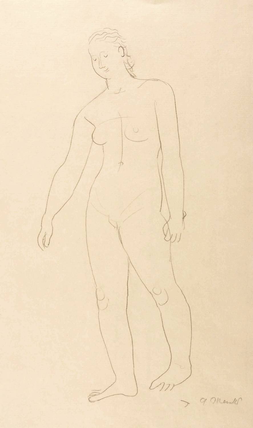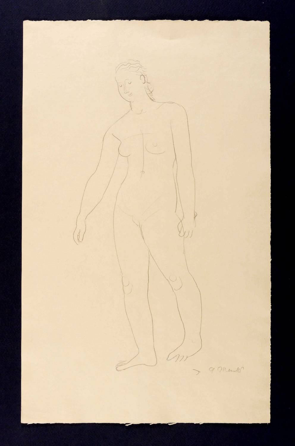 Rechts unten in Bleistift signiert: ″G. Marcks″. Verso diverse Notationen. – Verso verworfene Akt-Studie in Bleistift. – Vollrandiges Exemplar. Sehr guter Zustand.