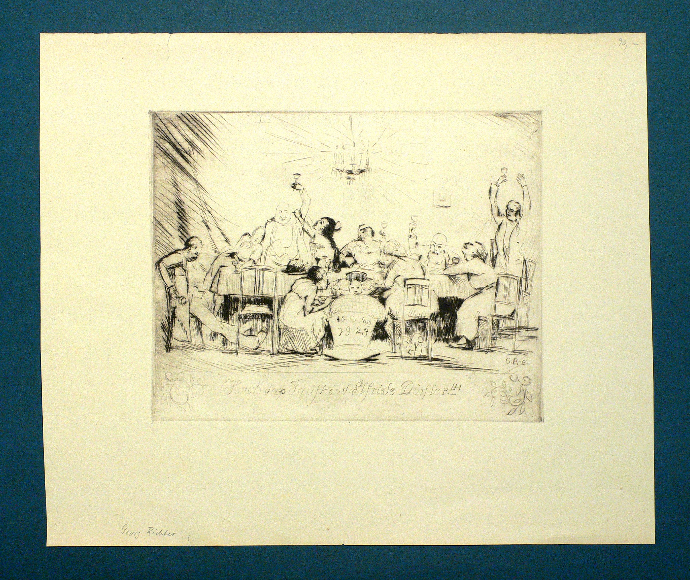 1923. Radierung / Kaltnadel, in Schwarz, auf gelblichem Velin. – Originale Künstlergrafik, von Georg Richter-Lößnitz. – 19,2 x 24,5 cm (Darstellung / Platte), 32 x 38 cm (Blatt).