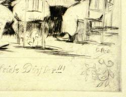 In der Platte monogrammiert rechts unten, mittig betitelt und in der Darstellung datiert ″16. Aug. 1923″. Am Blattrand links unten von fremder Hand in Bleistift bezeichnet ″Georg Richter″. Verso Sammlerstempel und nochmals bezeichnet ″Georg Richter geb. 1891 Dresden - Lössnitz″. – Papier etwas gebräunt. Blattrand mit Einrissen. Mäßig guter Gesamtzustand.