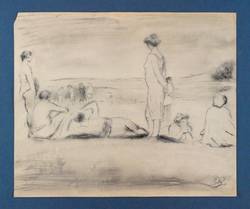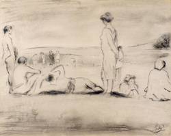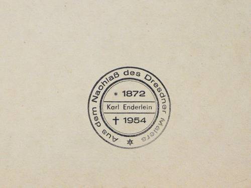 Nicht handsigniert. Verso von fremder Hand in Bleistift bezeichnet: ″Karl Enderlein / Im Bad / ca.1920 // Im Bad″. Dazu Nachlass-Stempel. – Kleiner Eckenausriss links oben. Mäßig guter Zustand.
