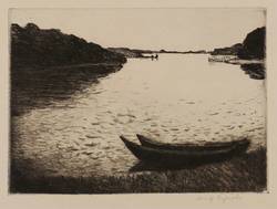 Um 1919. Radierung / Strichätzung & Kaltnadel, in Schwarz, auf gelbem Velin. – Originale Künstlergrafik, von Wilhelm Oesterle. – 19,2 x 26,5 cm (Darstellung / Platte), 32 x 48 cm (Blatt).