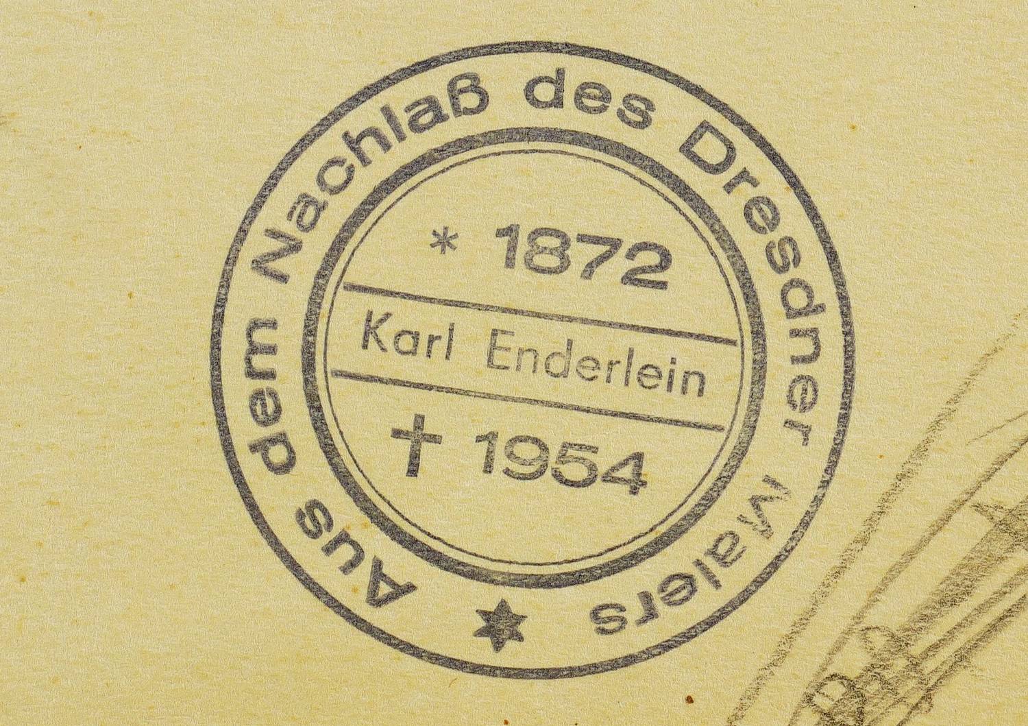 Verso eigenhändig in Bleistift betitelt. Dazu Nachlass-Stempel Karl Enderlein. – Papier etwas gebräunt. Etwas lichtrandig. Die Ecken marginal bestoßen und insgesamt leicht fingerspurig. Gut erhalten.
