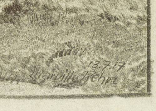 1917. Zeichnung / Bleistiftzeichnung, auf hellgrauem Karton. – Originale Künstlergrafik, von Walter Richard Rehn. – Unikat. – 37,2 x 21,7 cm (Darstellung), 48 x 33 cm (Blatt).