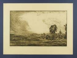 1920. Radierung / Strichätzung & Kaltnadel, in Braun, mit Plattenton, auf gelbem Velin. – Originale Künstlergrafik, von Arthur Henne. – 28,9 x 46,6 cm (Darstellung / Platte), 42 x 57 cm (Blatt).