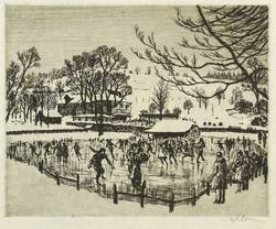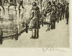 Um 1918. Radierung / Strichätzung & Kaltnadel, mit Plattenton, in Schwarz, auf hellgelbem Velin. – Originale Künstlergrafik, von Walther Klemm. – 19,7 x 24,0 cm (Darstellung / Platte), 34 x 42 cm (Blatt).