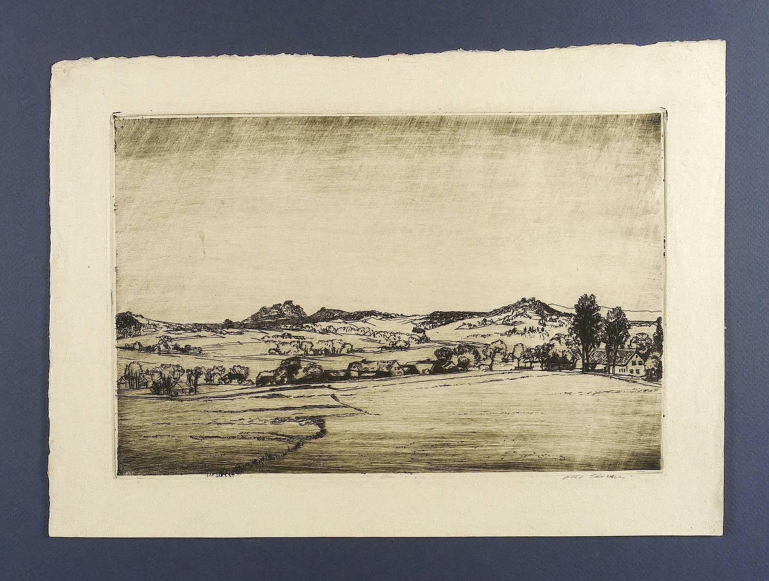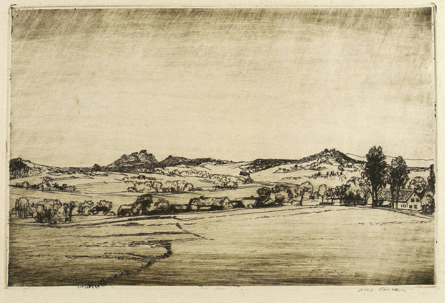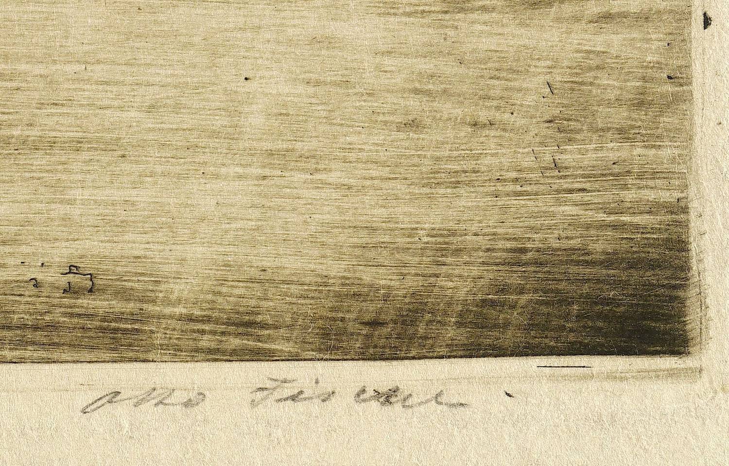 Um 1905. Radierung / Strichätzung, in Schwarzbraun, auf gelbem Velin. – Originale Künstlergrafik, von Otto Fischer. – 19,5 x 29,5 cm (Darstellung / Platte), 26 x 36 cm (Blatt).