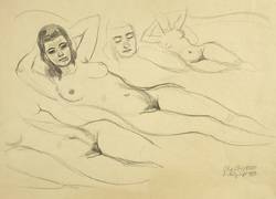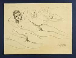 1958. Zeichnung / Bleistiftzeichnung, auf gelbem Velin. – Originale Künstlergrafik, von Otto Schubert. – Unikat. – 25,5 x 37,5 cm (Darstellung), 29 x 39 cm (Blatt).
