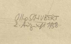Rechts unten signiert und datiert: ″Otto SCHUBERT / 2. August 1958″. – Papier stärker gebräunt. Guter Gesamtzustand.