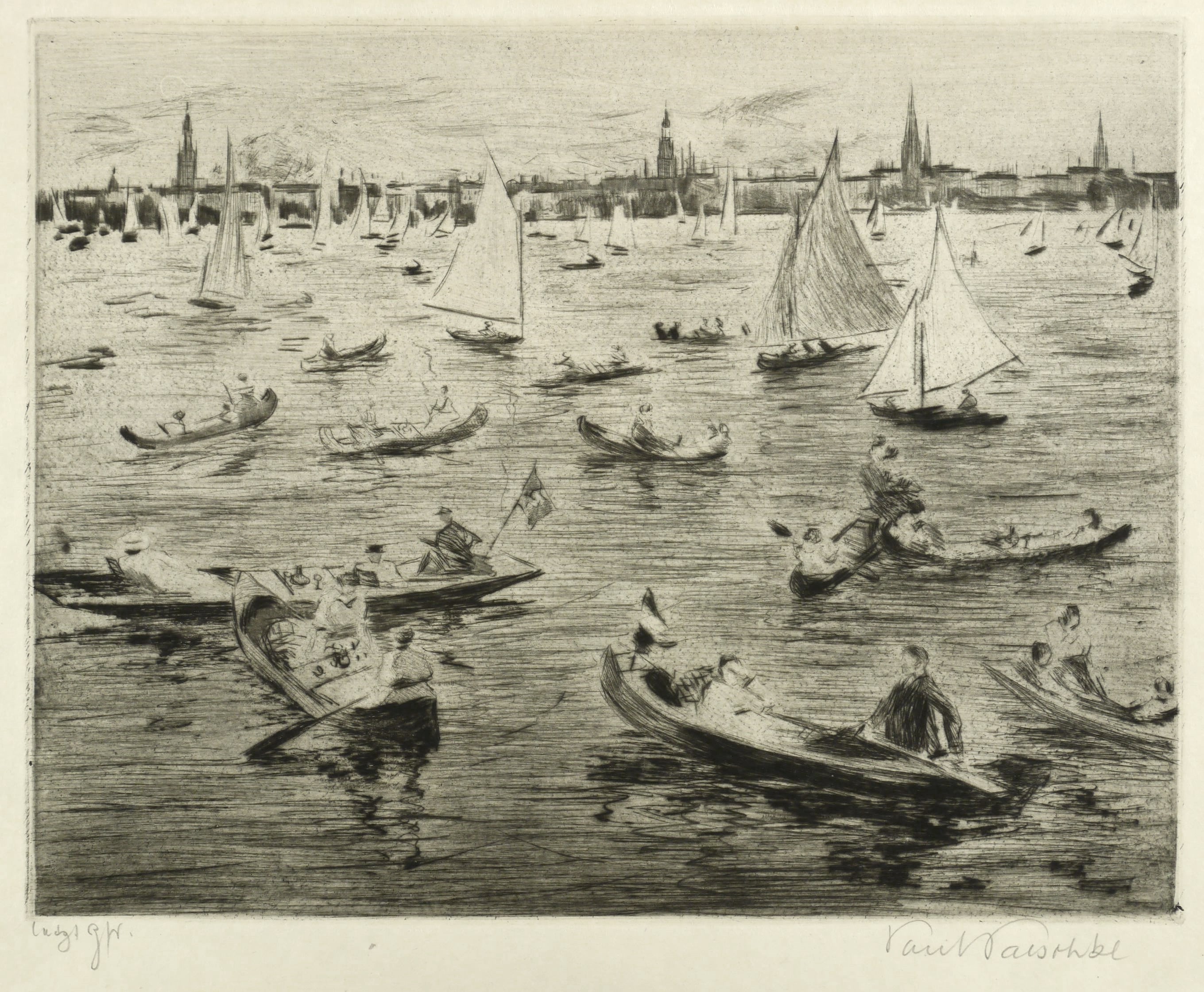 Paeschke, Paul. – „Boote auf der Binnenalster (Hamburg)”.