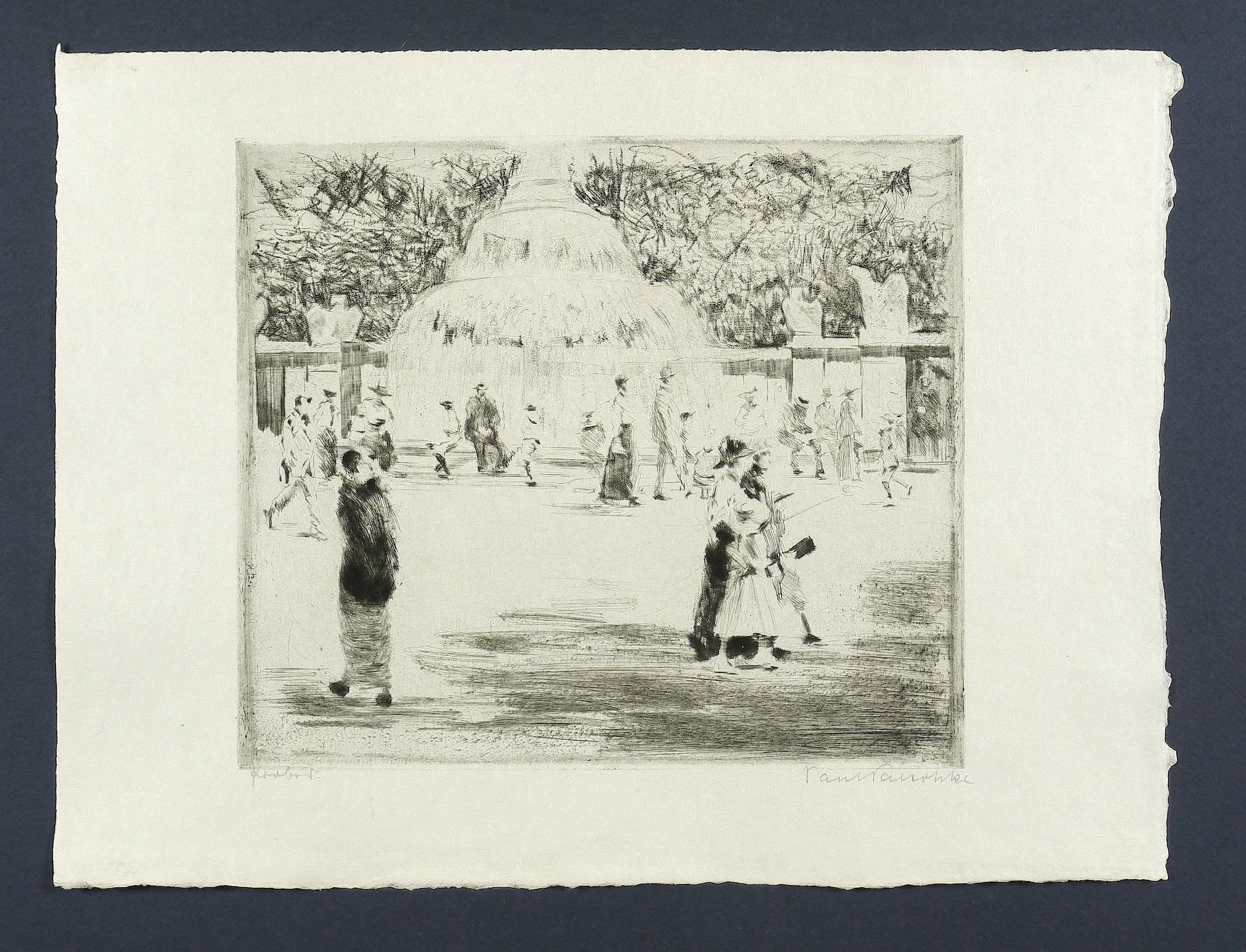 1914. Radierung / Vernis mou, Roulette & Kaltnadel, in Schwarz, auf festem Japanpapier. – Originale Künstlergrafik, von Paul Paeschke. – Probedruck. – 23,0 x 26,4 cm (Darstellung / Platte), 31 x 40 cm (Blatt).