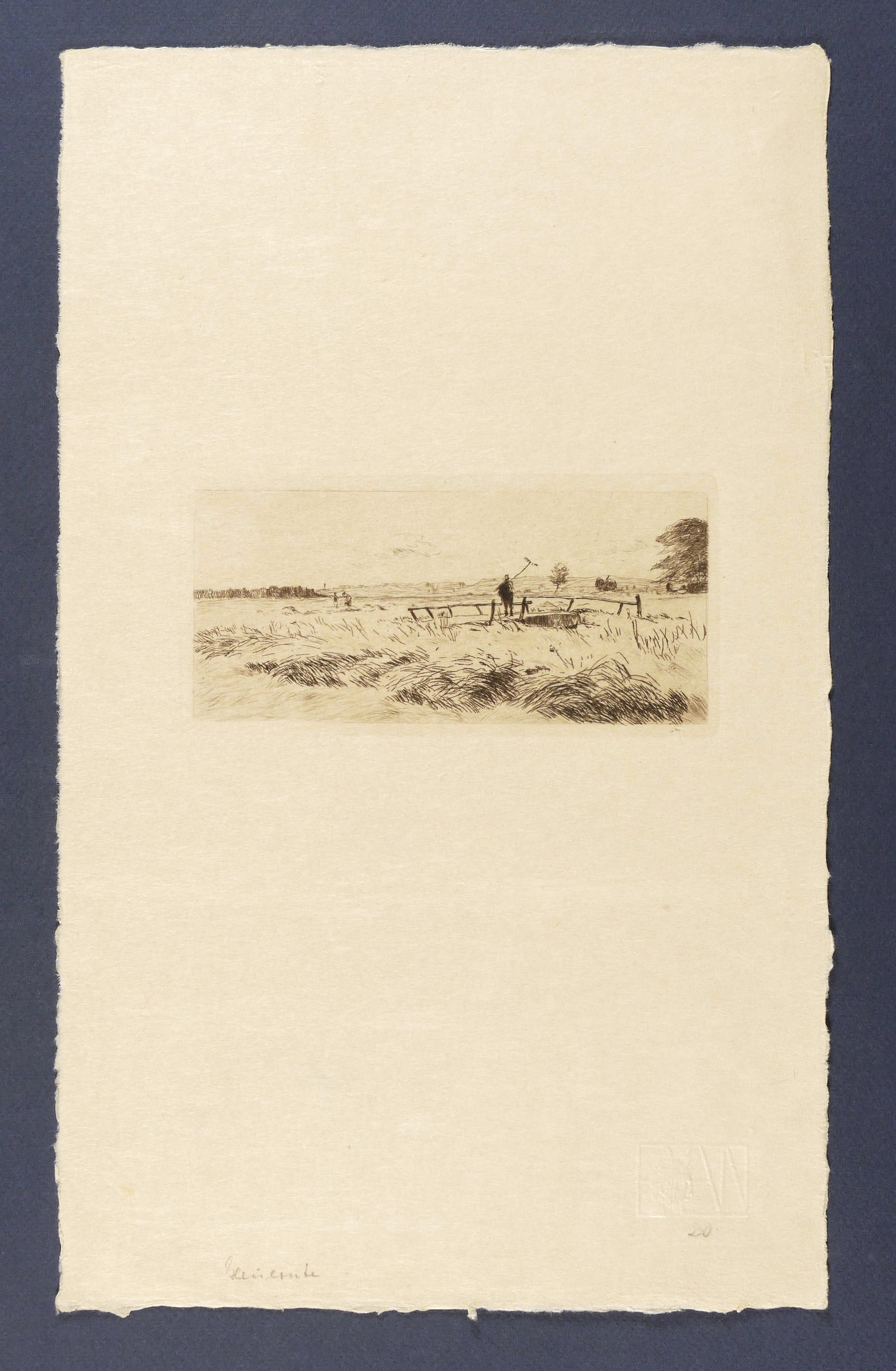 Aus: Pan (Berlin: Fontane 1895-1900), Bd. 1-5. – Am unteren Blattrand rechts Trockenstempel des Pan. Dazu in Bleistift nummeriert ″20″. Links betitelt. – Aus der signierten und nummerierten Auflage für die Vorzugsausgabe des PAN. Dieses Blatt nicht signiert. – Originalrandiges Exemplar. Sehr gut erhalten.