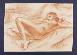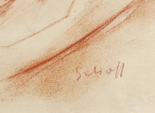 1920-1930. Zeichnung / Rötelkreide, auf leichtem hellgelbem Papier. – Originale Künstlergrafik, von Otto Schoff. – Unikat. – 20,3 x 28,6 cm (Darstellung / Blatt).