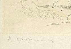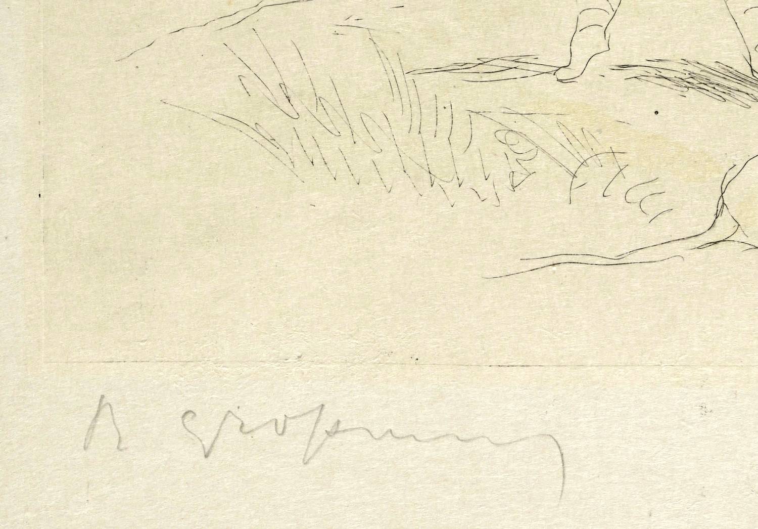 Um 1925. Radierung / Strichätzung, aquarelliert, auf feinem gelblichem Japanbütten. – Originale Künstlergrafik, von Rudolf Großmann. – 21,6 x 29,0 cm (Darstellung / Platte), 32 x 48 cm (Blatt).
