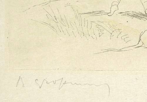 Links unten in Bleistift signiert. Rechts unten in der Blattecke Trockenstempel des Pan. – Originalrandiges Exemplar. Sehr gut erhalten.