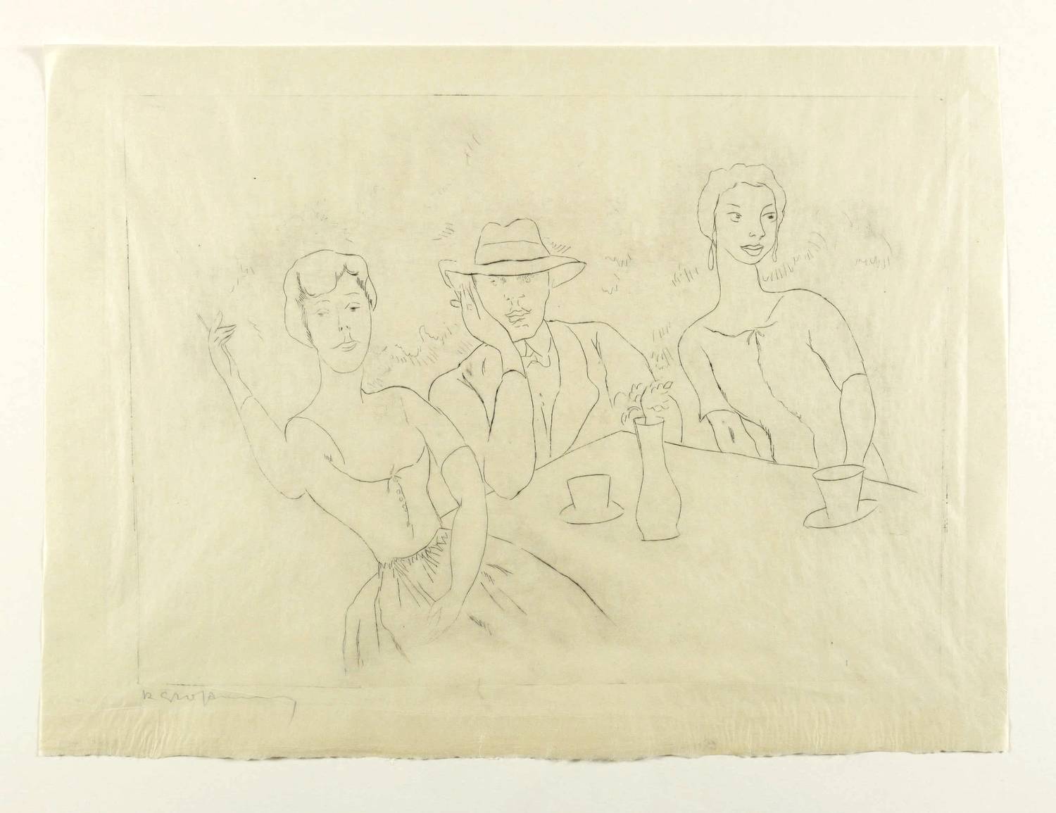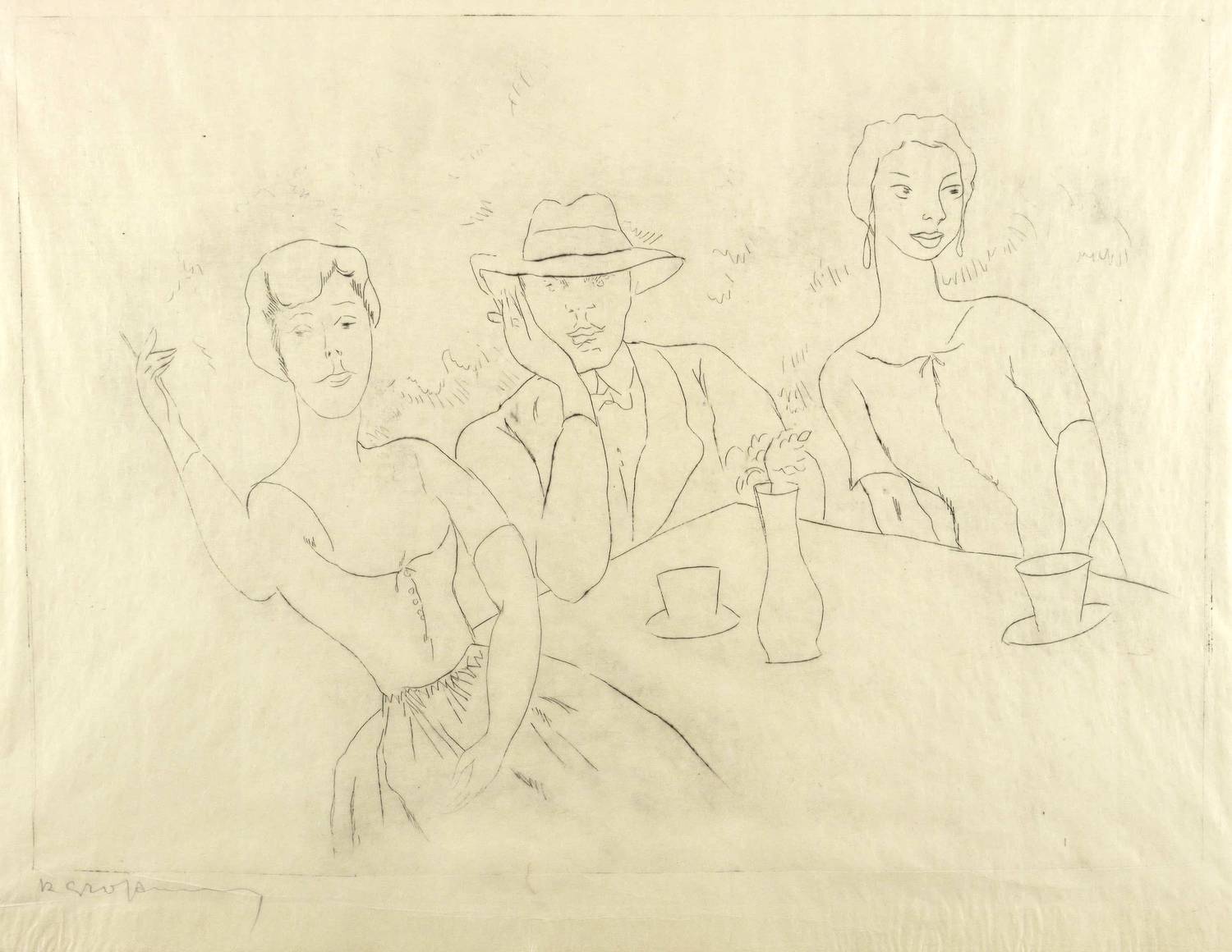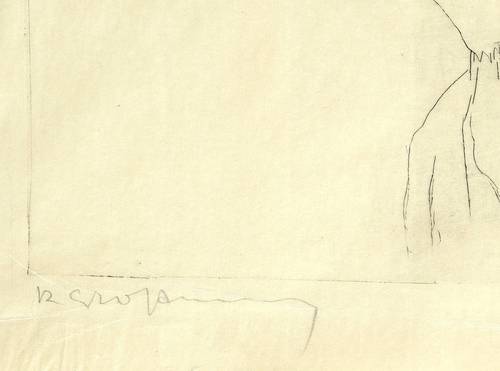Um 1925. Radierung / Kaltnadel, in Schwarz, auf feinem transparentem China. – Originale Künstlergrafik, von Rudolf Großmann. – 26,4 x 36,5 cm (Darstellung / Platte), 32 x 43 cm (Blatt).