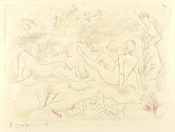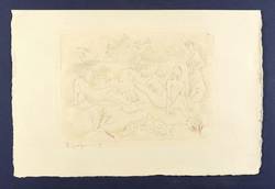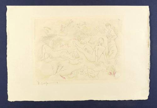 Um 1925. Radierung / Strichätzung, aquarelliert, auf feinem gelblichem Japanbütten. – Originale Künstlergrafik, von Rudolf Großmann. – 20,9 x 29,5 cm (Darstellung / Platte), 32 x 48 cm (Blatt).