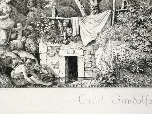 Hoff-Budde 210-215. Hoff 171-176. – Aus: Radierungen von Ludwig Richter II. Heft. VI. Bll. Malerische Ansichten aus den Umgebungen von Rom (Leipzig: C. G. Börner 1832). – Jeweils in der Platte signiert bzw. monogrammiert, mittig unterhalb der Darstellung betitelt. Unten links jeweils in der Platte Trockenstempel des Leipziger Verlegers C.G. Börner. Die Platten jeweils oben rechts nummeriert 1-6. – Die Sammlung umfasst die Blätter ″Osteria″, ″Monte Circello″, ″Rocca di Mezzo″, ″Olevano″, ″Ponte Salaro″ und ″Castel Gandolfo″. - Reizende romantische Arbeiten deutscher Italiensehnsucht des frühen 19. Jahrhunderts. - Selten. – Ohne den Verlagsumschlag. Papier insbesondere an den Blattkanten schwach gebräunt. Blatt Nr. 3 (Rocca di Mezzo) mit kleinem Eselsohr links unten. Ingesamt dem Alter entsprechend guter Erhaltungszustand.