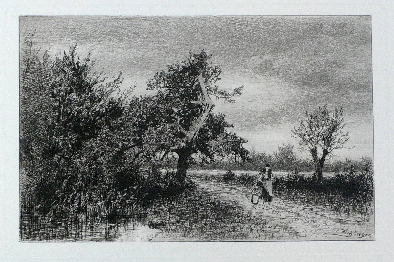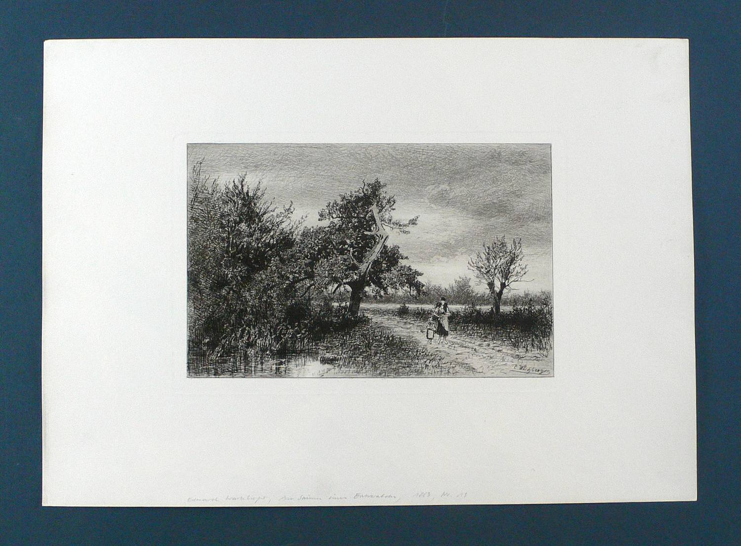 Aus: Radirungen. Hrsg. vom Radirverein zu Weimar (Weimar: Gesellschaft für Radirkunst 1877-1914). – In der Platte rechts unten signiert: ″E. Weichberger″. – Blatt Nr. 13 der Jahresgabe von 1883 des Weimarer Radiervereins. – Blattrand leicht angeschmutzt. Sonst gut erhalten.