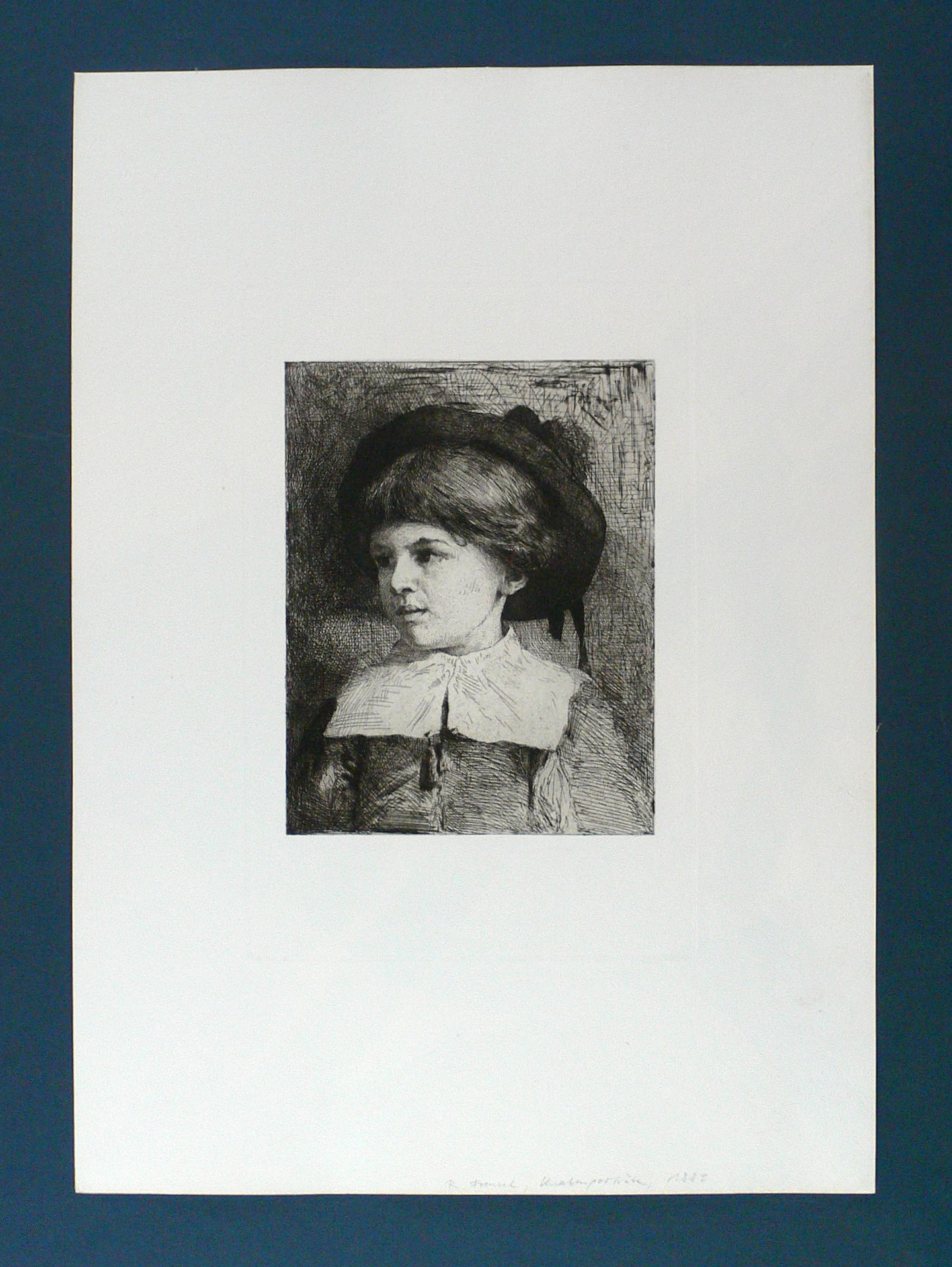 1882. Radierung / Strichätzung, auf festem Kupferdruckpapier. – Von Ludwig Carl Frenzel. – 20,8 x 16,2 cm (Darstellung), 29,9 x 19,9 cm (Platte), 49,5 x 35,5 cm (Blatt).