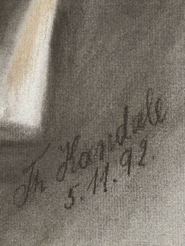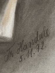 1892. Zeichnung / Pastellkreide, in Schwarz, Orange und Weiß, auf hellgrauem Bütten. – Originale Künstlergrafik, von Theodor Kandale. – Unikat. – 48,5 x 34,0 cm (Darstellung / Blatt).